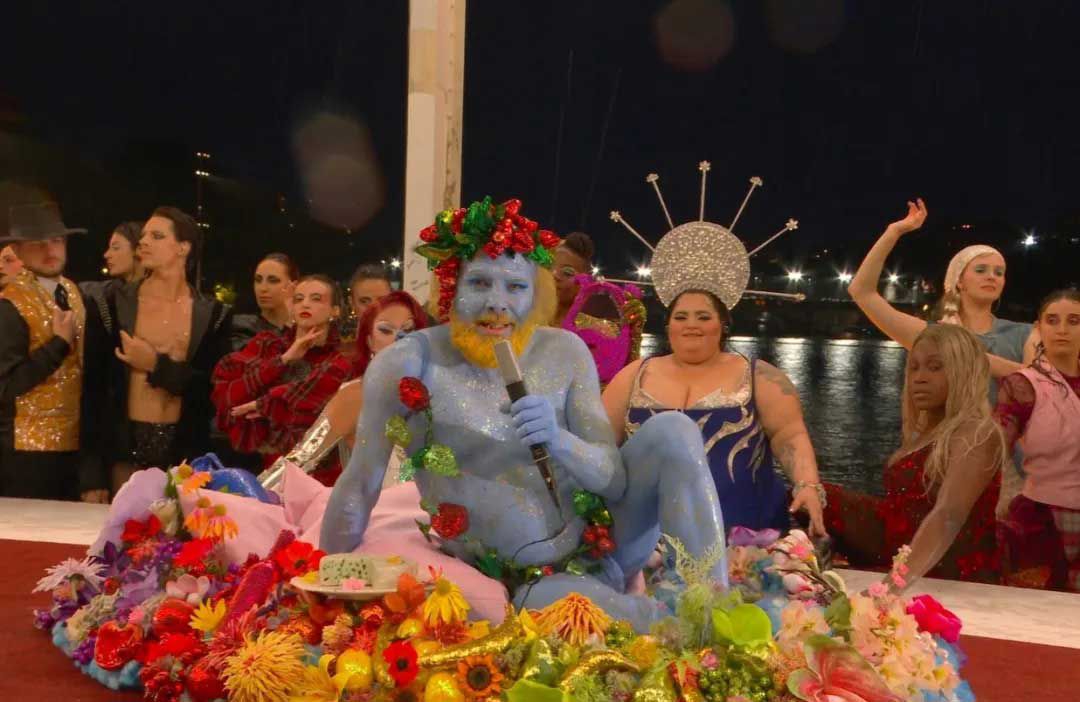 現(xiàn)年 55 歲的他憑借“Louxor, j'adore”在 21 世紀(jì)初在法國(guó)走紅。這次他幾乎赤身裸體地表演了這首舞蹈,并將身體涂成藍(lán)色,以代表酒神狄俄尼索斯。