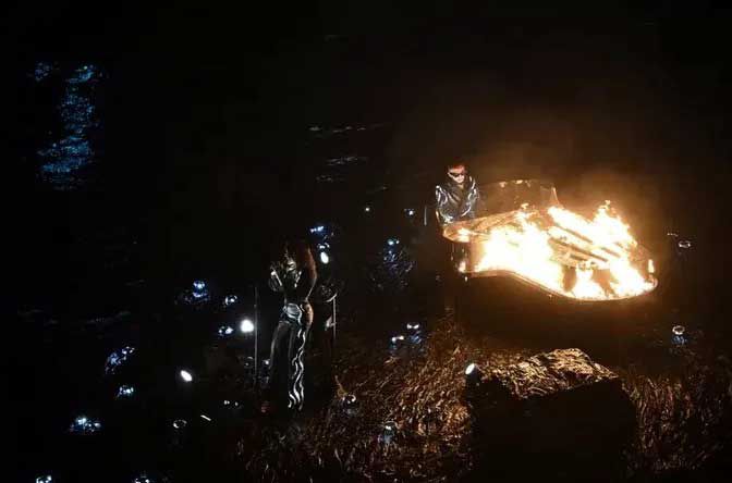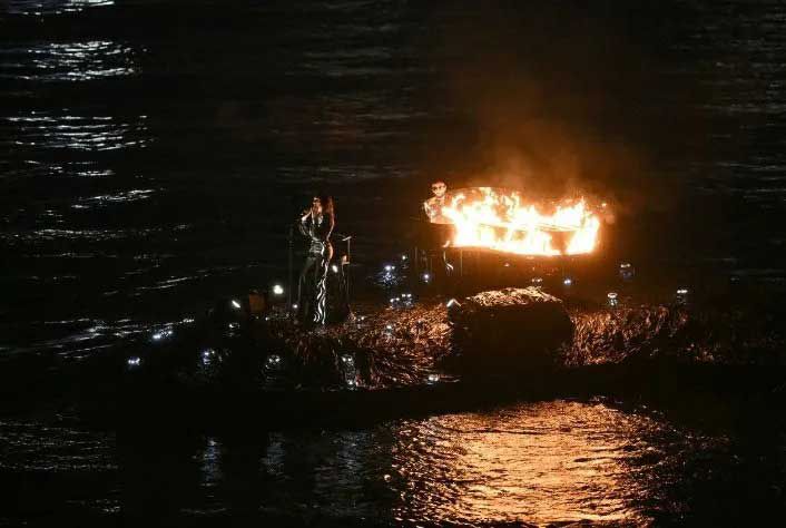 鋼琴家索菲亞娜·帕馬特 (Sofiane Pamart) 和歌手朱麗葉·阿瑪內(nèi)特 (Juliette Armanet) 剛剛在塞納河的一艘船上演奏了約翰·列儂和小野洋子的歌曲“想象”,鋼琴頂部冒出了火焰。