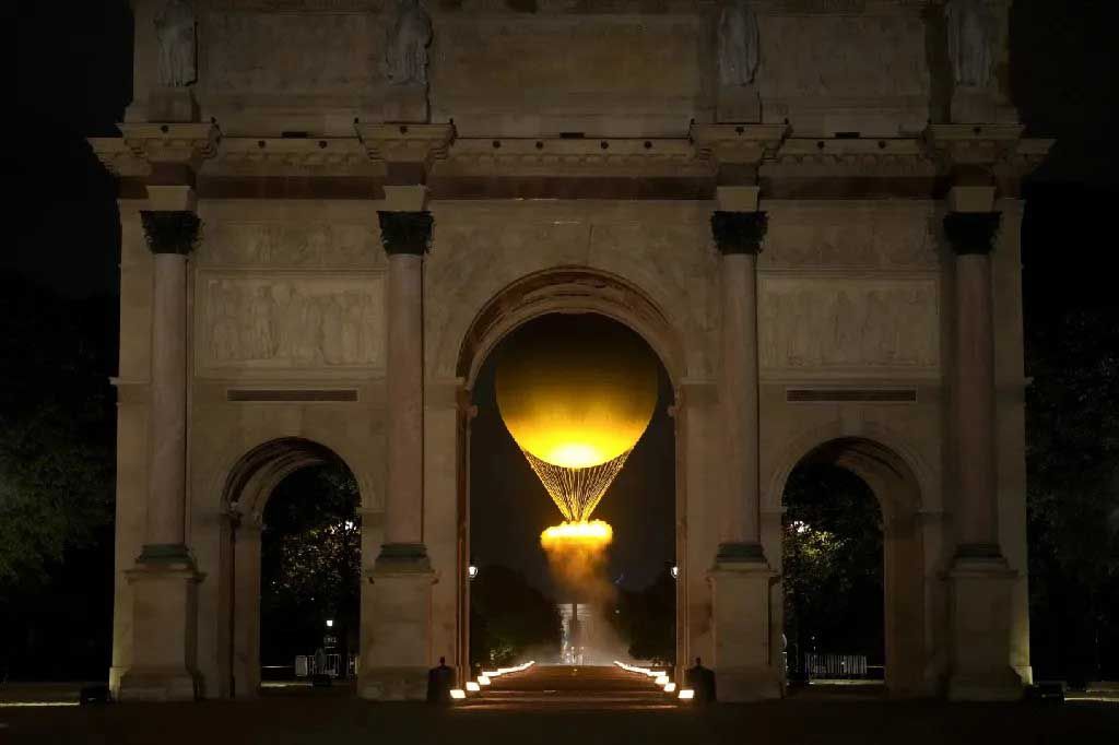 查爾斯·科斯特是法國(guó)最年長(zhǎng)的奧運(yùn)冠軍,今年 100 歲。他從輪椅上接過(guò)奧運(yùn)圣火,然后將其傳遞給法國(guó)柔道名將泰迪·里內(nèi)爾和短跑運(yùn)動(dòng)員瑪麗-何塞·佩雷克。他們點(diǎn)燃了連接在巨型氣球上的圣火盆,然后氣球飄入巴黎的夜空。