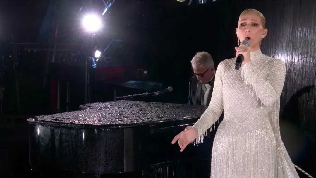 熱氣球升起后,席琳·迪翁從埃菲爾鐵塔一層復(fù)出,這是她宣布患有僵人綜合征后的首次表演。